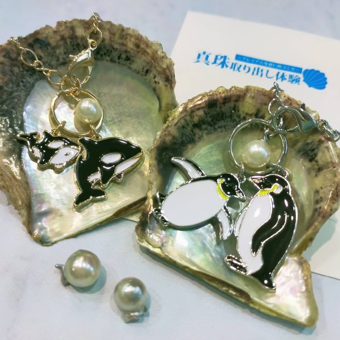 ご自身で貝を選び、バターナイフを使って貝を開けますので、お子様から大人まで年齢や性別に関わらず、どなたでも簡単に真珠を取り出し、お楽しみいただけます。真珠には個性があり、色・カタチ・大きさ、それぞれ多様です。自分で取り出した、世界に一つ、自分だけの真珠アクセサリーに加工して、お持ち帰りしましょう!